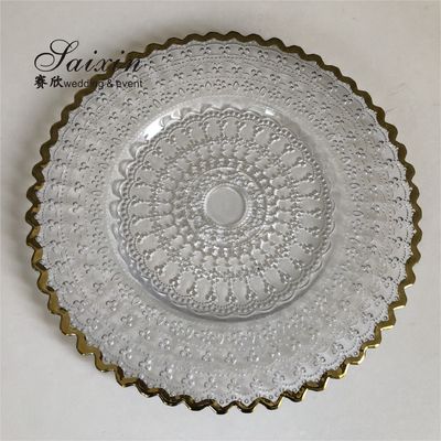 | Highlight: | clear beaded glass charger plates,clear glass charger with gold beaded edge,clear glass chargers with gold trim |